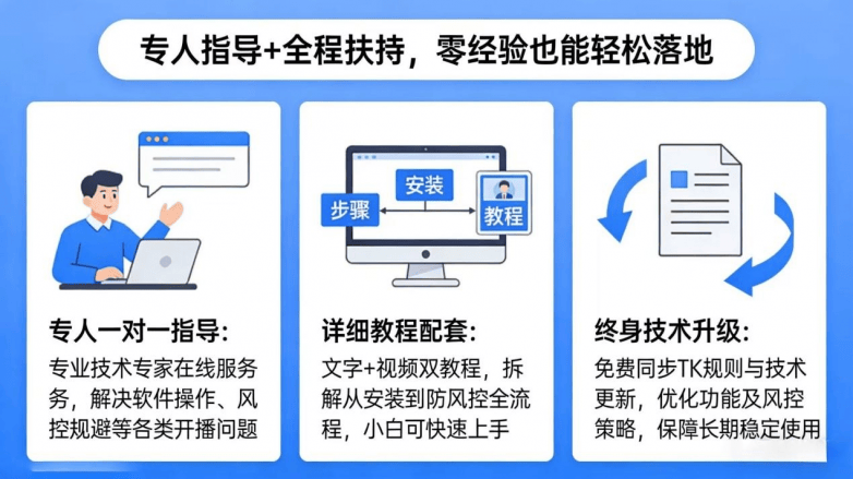 2026年全球跨境电商市场规模将冲破5万亿美元,相较保守实人曲播劣势显著。零经验也能成功入局,无人曲播成为新手入局跨境的高效径。针对新手痛点,一对一专人指点、赛道规划、风控规避,笼盖双赛道,实现一键、从动变现、平安值守。